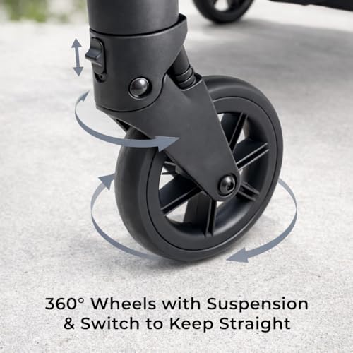 - 【Smooth steering, stable underfoot】360° rotating front wheels with suspension and quick release front wheels for faster cleaning or storage. Effortless control on uneven paths or kerbs.