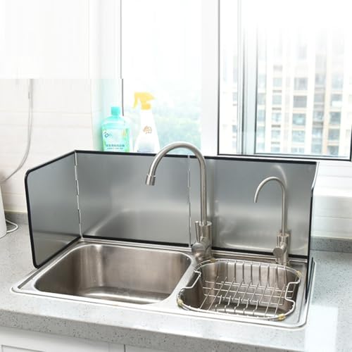 - Introducing our kitchen side splash guard, a must have for every homemade! This innovative product is designed to protect your kitchen surfaces unsightly from splashing oil and damage caused by while cooking. Made with high quality galvanized material, this splash guard is not only durable but also sturdy, ensuring it can withstand rigors in everyday cooking.