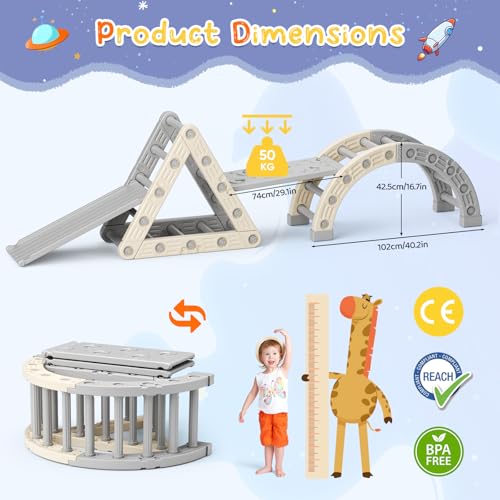 - Multi-Functional Design for Extended Play: Each component offers versatile uses to spark imagination. The climbing boards feature a textured climbing side and a slick reverse side that functions as a compact slide. This dual-purpose design doubles the fun, supporting active climbing games as well as imaginative play scenarios.