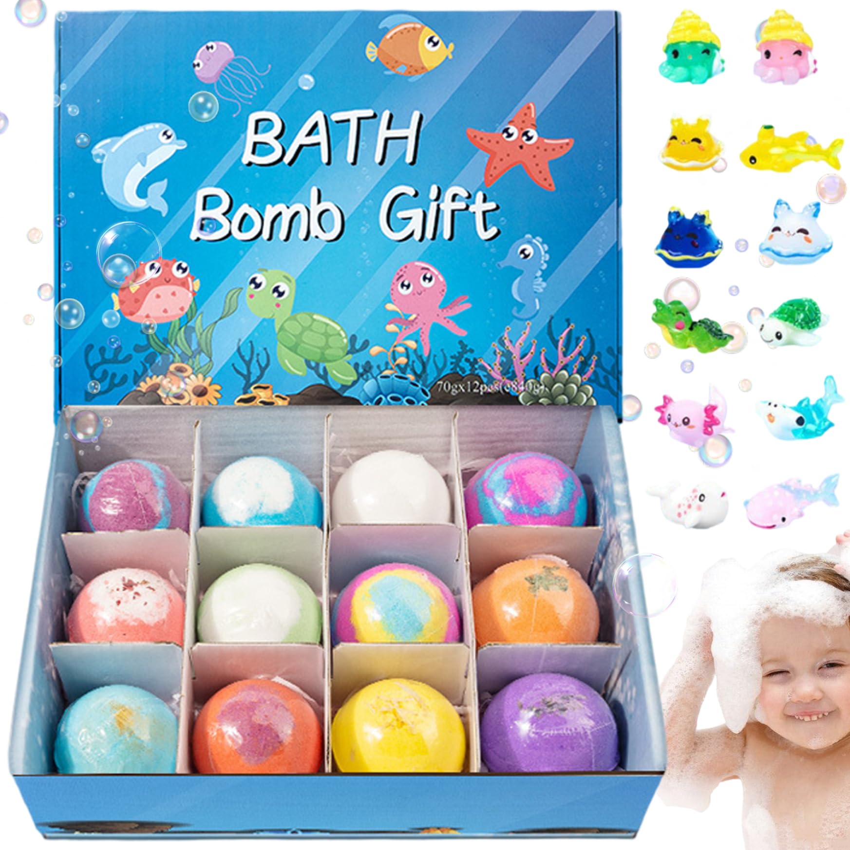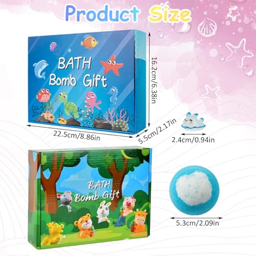12Pcs/Set Bath Bombs with Toys Inside 2 Inch Bath Bombs with Cute Animal Toys, Child-Safe Fizzy Colorful Bubble Bathroom Supplies for Kids, Blue