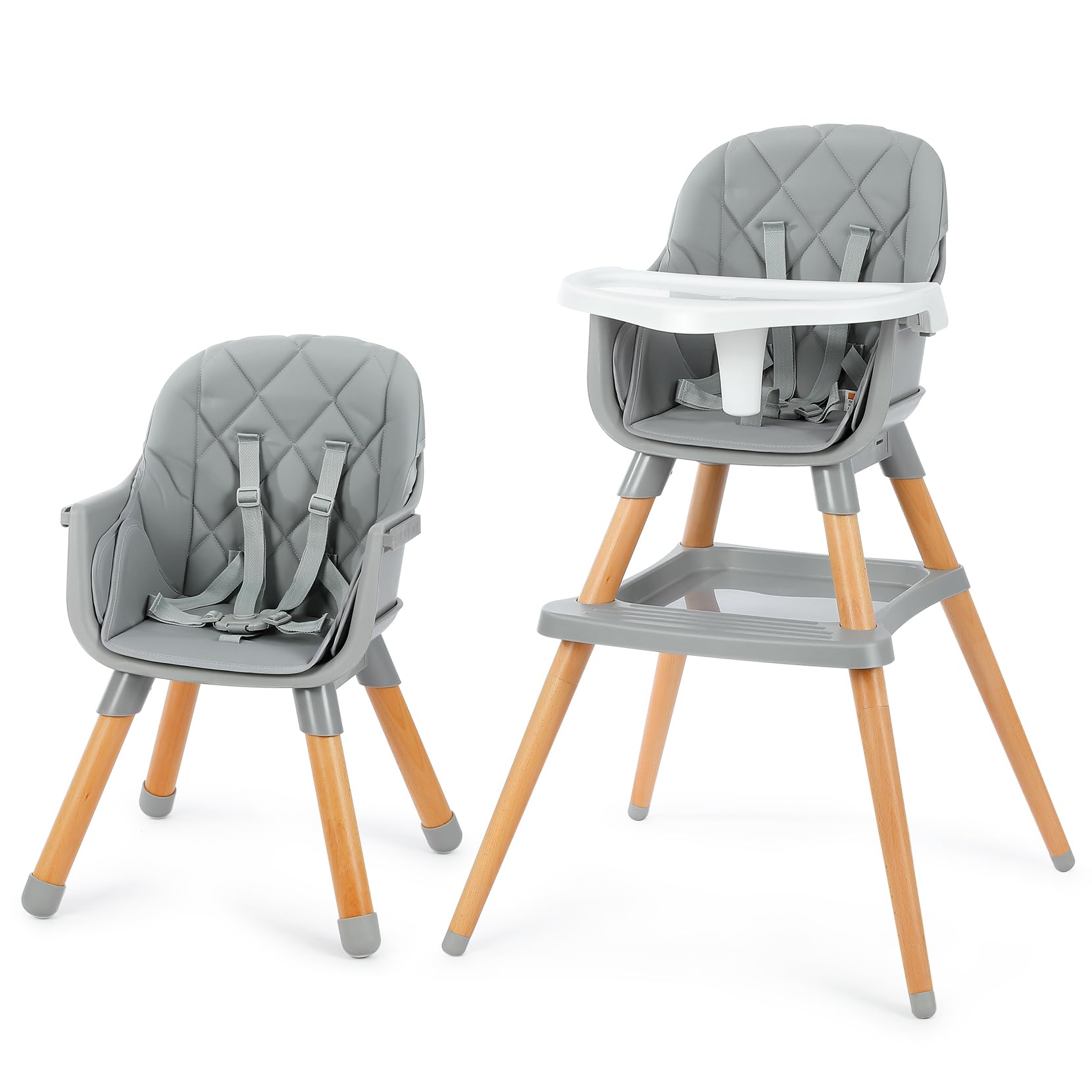 6-in-1 Baby High Chair with Wooden Legs, Convertible to Booster Seat & Toddler