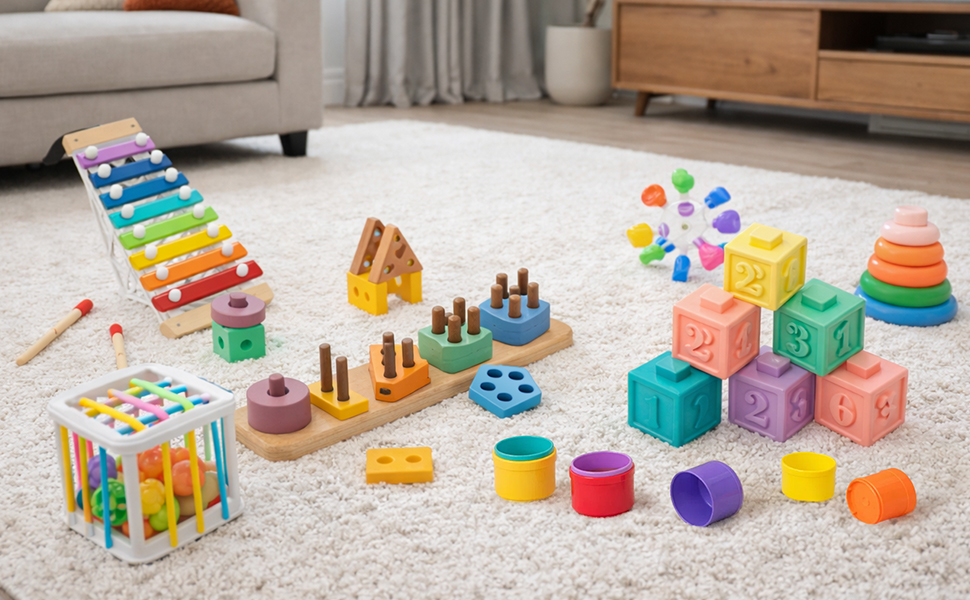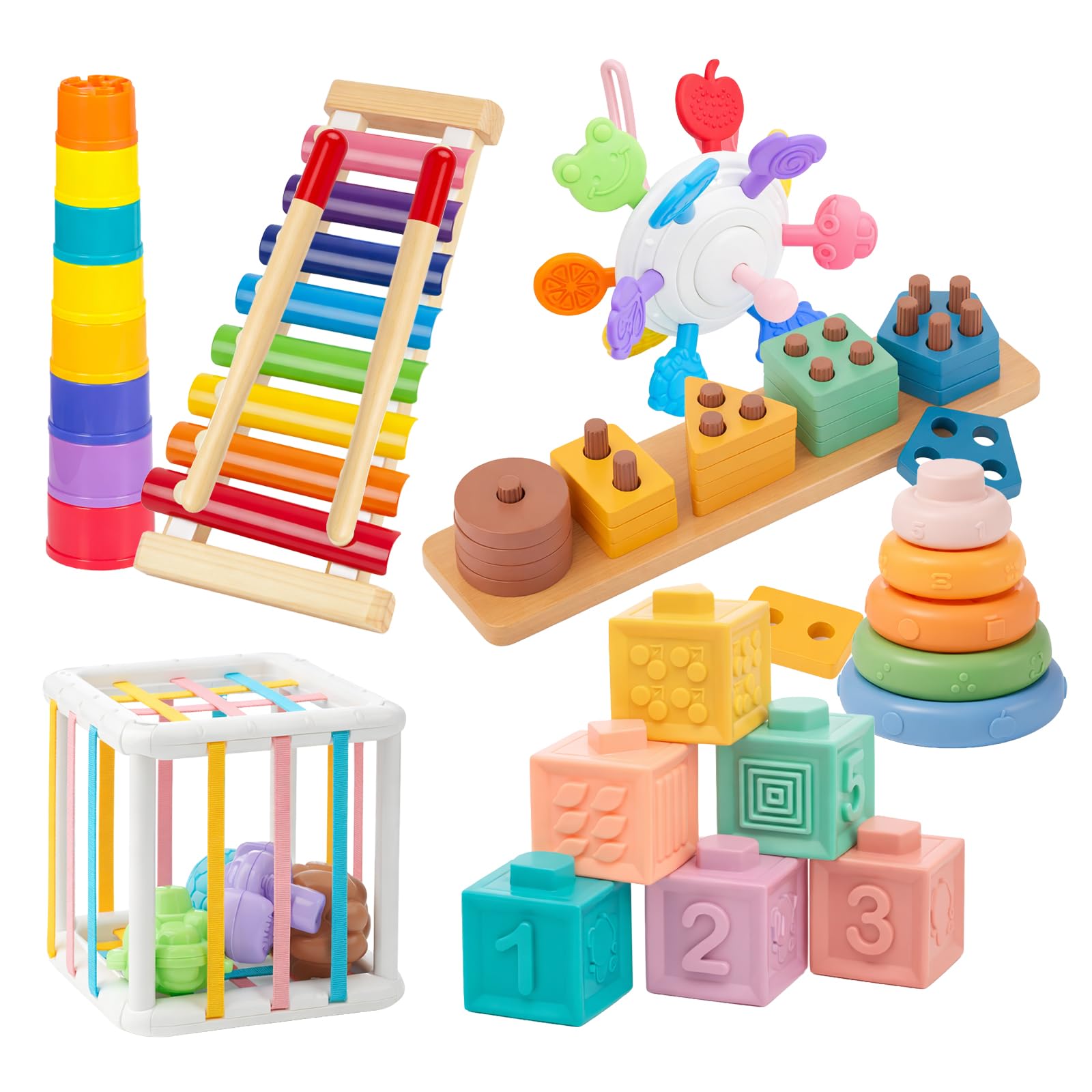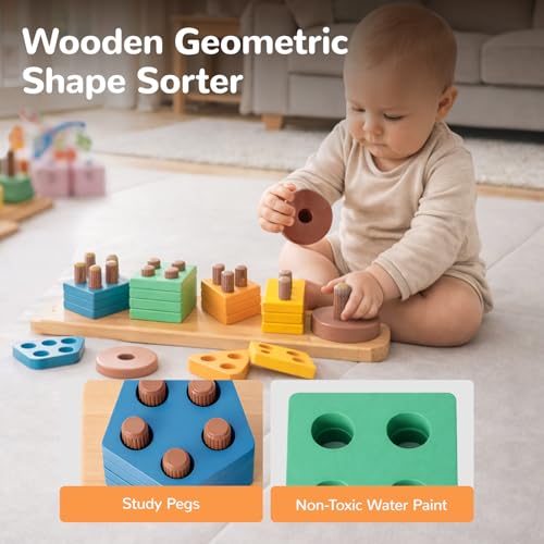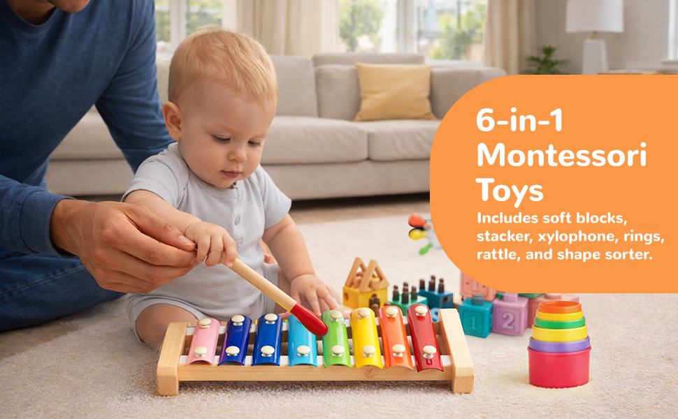 - Baby Montessori Toys for 6 Months to 3 Year Old Boy Girls, Wooden Hammering Pounding Toy 7 in 1 Wooden Sorting and Stacking Blocks Activity Cube Sensory Toy for Kids, Gifts for 1 2 3 Year