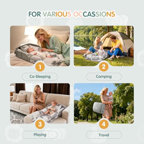 - VERSATILE BABY ESSENTIALS&GIFTS: Perfect for Every Occasion: This multi-use baby nest works seamlessly as a co-sleeping companion in the bedroom, a playtime spot in the living room, a diaper change station during outings, or a cozy spot at picnics. It’s also a thoughtful baby shower gift for expecting parents, serving as a practical alternative to traditional bassinets. Whether at home or traveling, this toddler travel bed keeps your baby close, comfortable, and content.