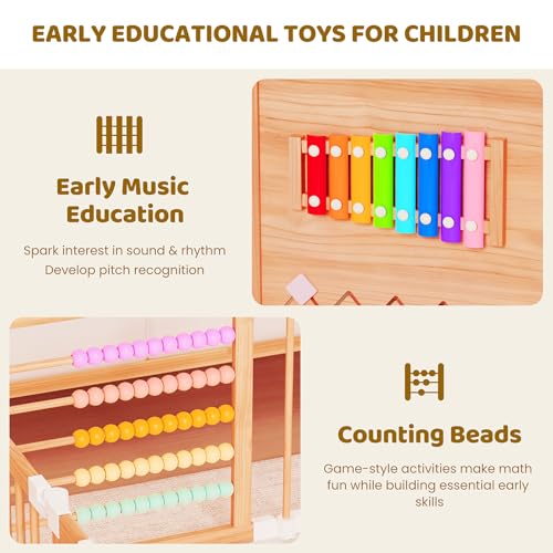 - [Wooden Playpen with Boys Built in]Toys are built in the panel of the baby fence to increase playtime in the playpen for toddlers 1-3, which encourages learning and interaction. It can also be an ideal activity center for babies aged 6-12 months and emancipate parents from the hard work