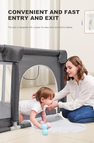 - Foldable & Effortless to Use Our baby playpen revolutionizes setup with a one-second push-to-close, pull-to-open mechanism, eliminating the tedious installation steps of traditional fences. When playtime ends, it folds compactly for easy storage, making it ideal for small homes, travel, or quick rearrangements. Spend less time assembling and more time watching your little one explore safely.