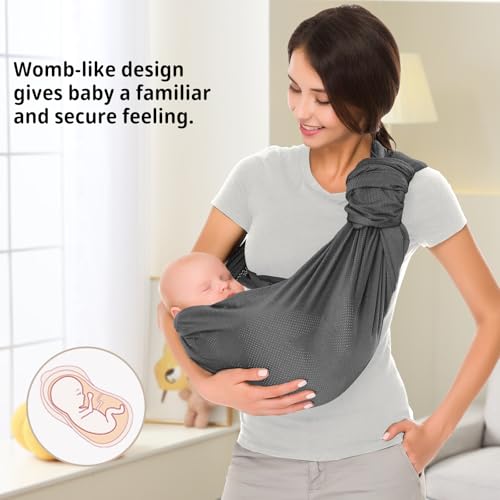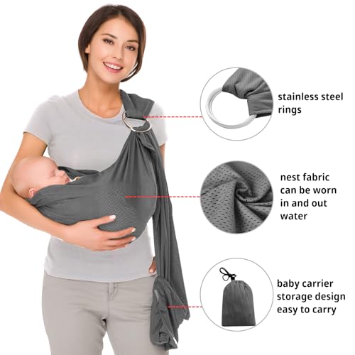 CUBY Summer Baby Sling Carrier, Wrap Baby Carriers from Newborn, Mesh Ring Quick