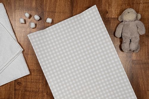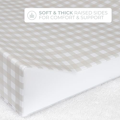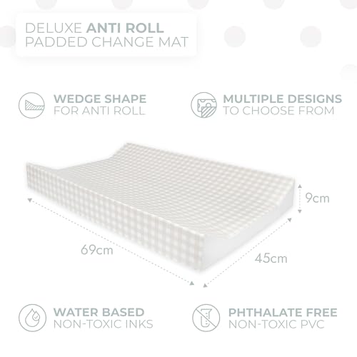 Deluxe Anti Roll Wedge Baby Changing Mat, Oat Gingham, Waterproof PVC with Curved Sides, 69x45x9cm