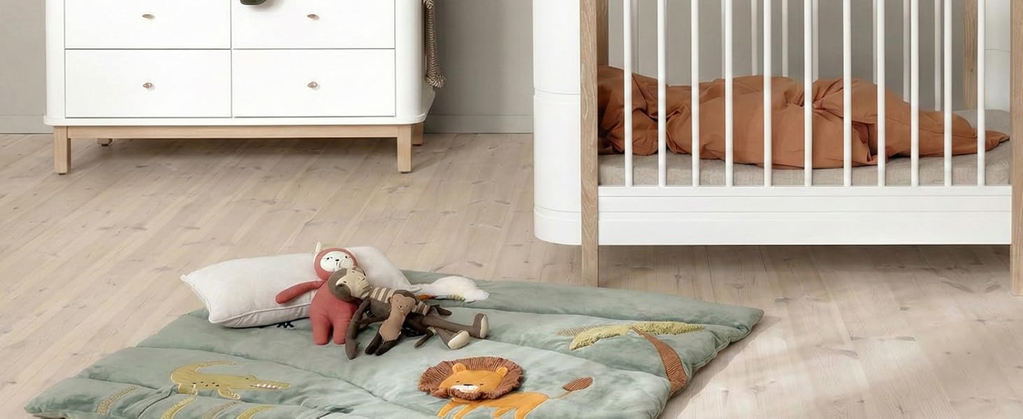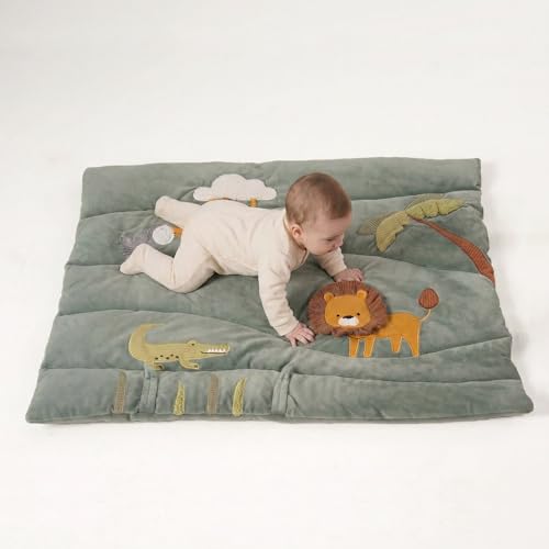 - EXTRA PADDED COMFORT MAT: Thick supportive base protects delicate joints and provides a cozy surface for rolling, crawling, and early sitting practice