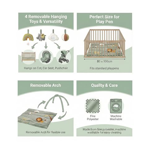 - EASY TO CLEAN DESIGN: Removable toys and washable mat make everyday messes manageable for busy parents