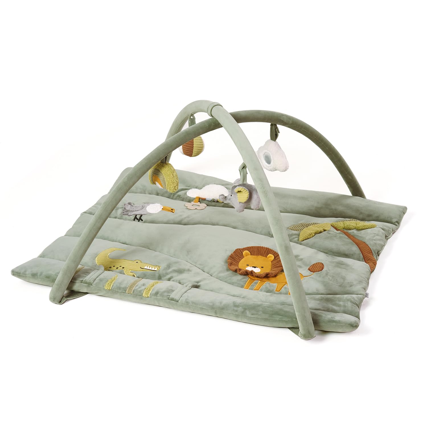 The thick supportive base provides a cozy surface for tummy time play, crawling, and early sitting practice