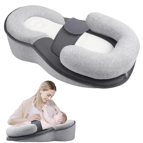 - 【Safe Fit】Engineered for safety, thisnursing cushionfeatures anergonomic groovethat gently wraps the baby's body. Equipped with a robustadjustable safety belt, it helps prevent sliding or rolling duringbottle feedingorbreastfeeding support, offering a secure hold like a mother's embrace. The Velcro-adjustable footrest allows you to customise the fit as your baby grows from0 to 12 months, ensuring a snug position under constant adult supervision.