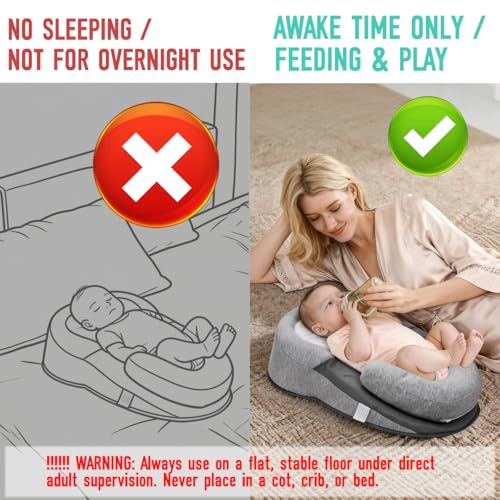 - 【VERSATILE COMPANION FOR 0-12 MONTHS】Perfect from birth to the sitting stage, thisfeeding support mataids inbottle feeding,nursing, and supervisedprone activities (tummy time)to strengthen neck muscles.