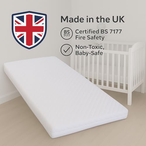 - BSI SAFETY CERTIFIED – UK STANDARD COMPLIANT Designed to meet BS EN 16890:2017+A1:2021 and BS 7177 safety regulations for infant mattresses. The quilted cover is made using certified materials for added reassurance. Sleep confidently knowing your baby’s travel cot mattress meets recognised UK safety standards.