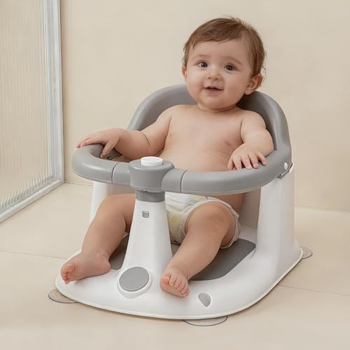 - DESIGNED FOR BABIES 6 MONTHS+ – Supportive sit-up bath seat designed to help babies sit safely and comfortably during bath time while encouraging independent sitting.