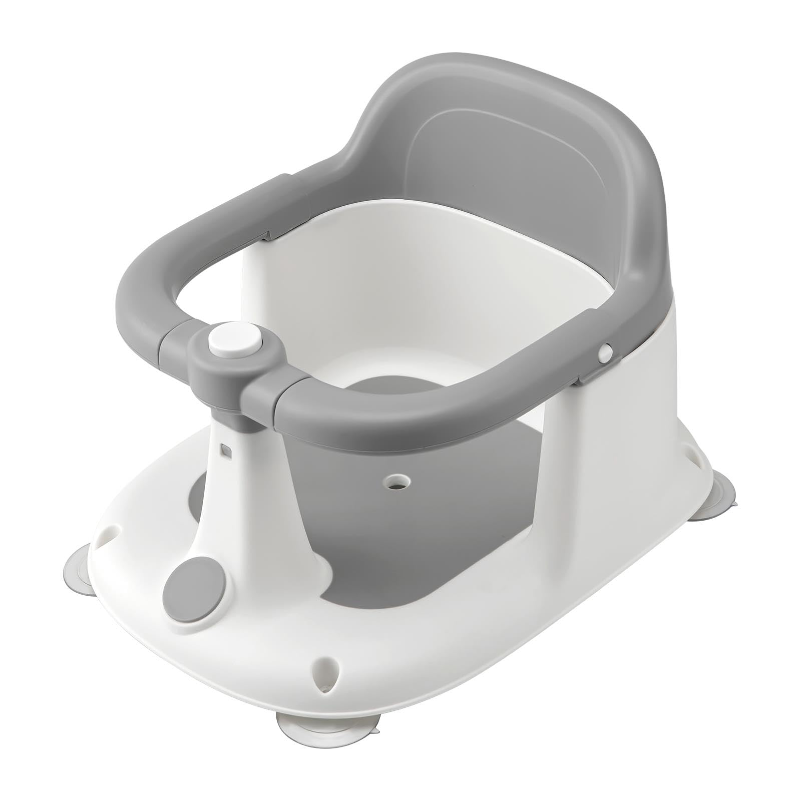simpa Baby Bath Seat for Babies 6 Months+, Non Slip Sit Up Bath Support with Soft Cushion, Secure Plastic Baby Bath Seat, White and Grey