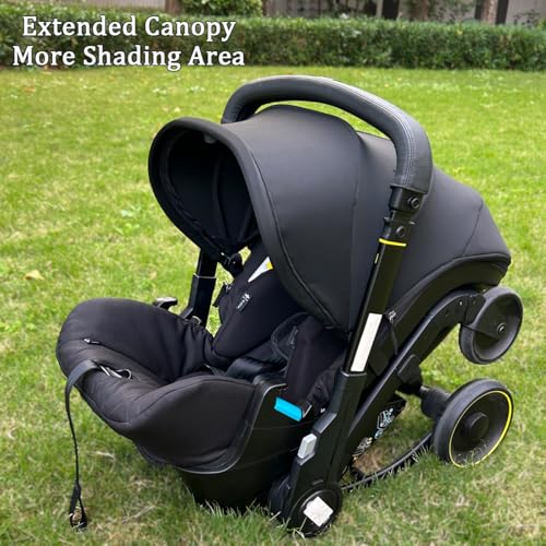 Stroller Replacement Canopy for Doona X/Doona+ / Doona i Car Seat Stroller, 4-Segment Extendable Sunshade, Machine Washable Stroller Accessories with Shoulder Pads (Black, for Doona X)