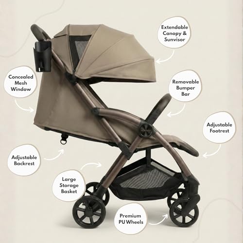 Venture Avio Stroller – Lightweight Compact Pushchair for Toddlers up to 4 Years – Travel Baby Stroller with Raincover, Cup Holder, Large Basket – Truffle