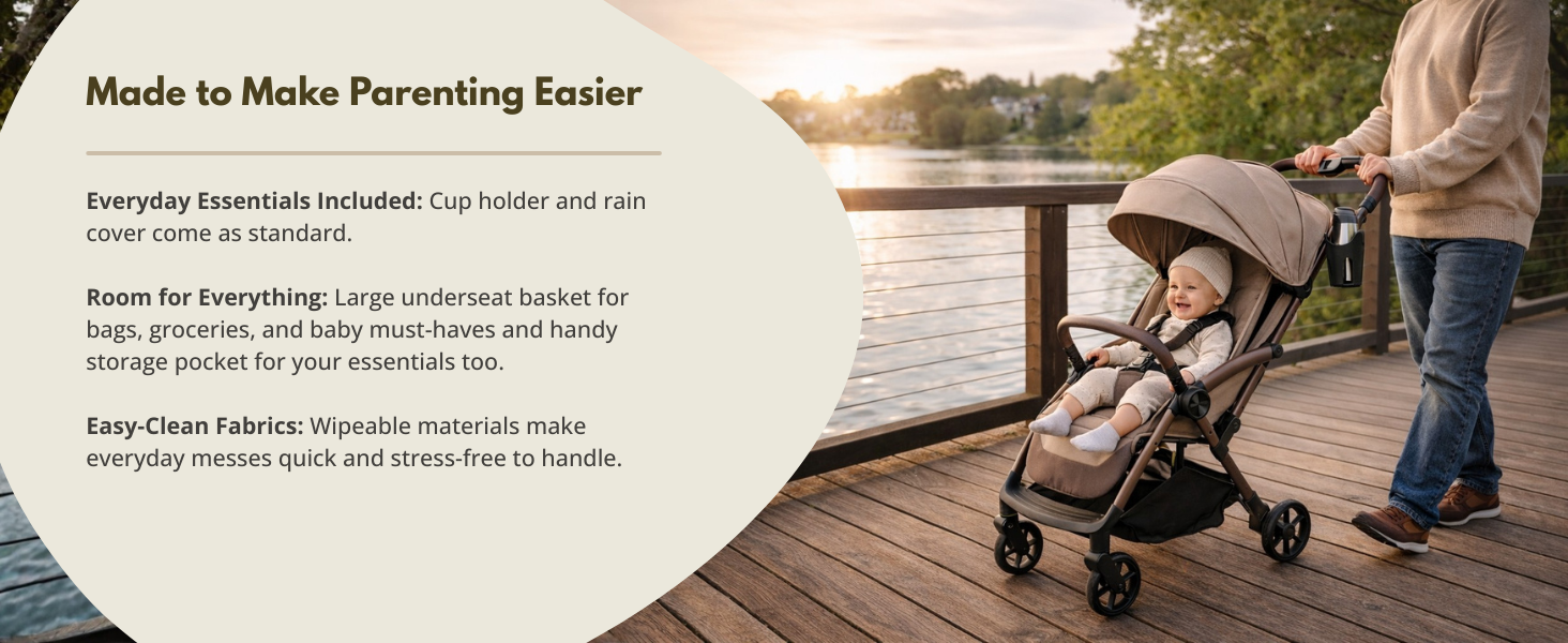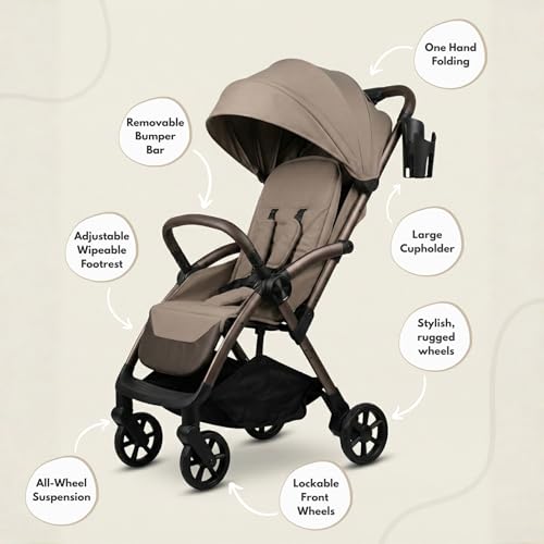 - SMOOTH RIDE WITH LOCKABLE FRONT WHEELS & SUSPENSION: All-round suspension absorbs bumps while lockable swivel front wheels give you control across pavements, parks and shopping centres. Designed as a compact stroller that handles everyday adventures with ease.