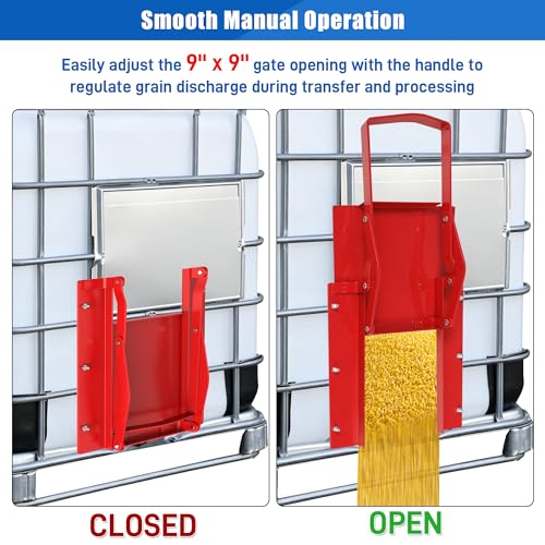 - 【Smooth Flow Control】 The 9" x 9" opening provides better control over material discharge, helping reduce spills, clogs, overflows, and wasted product during transfer. This grain bin slide gate opens and closes smoothly by hand, making it easier to manage the flow of grain, feed, seed, and other dry bulk materials in everyday operation.
