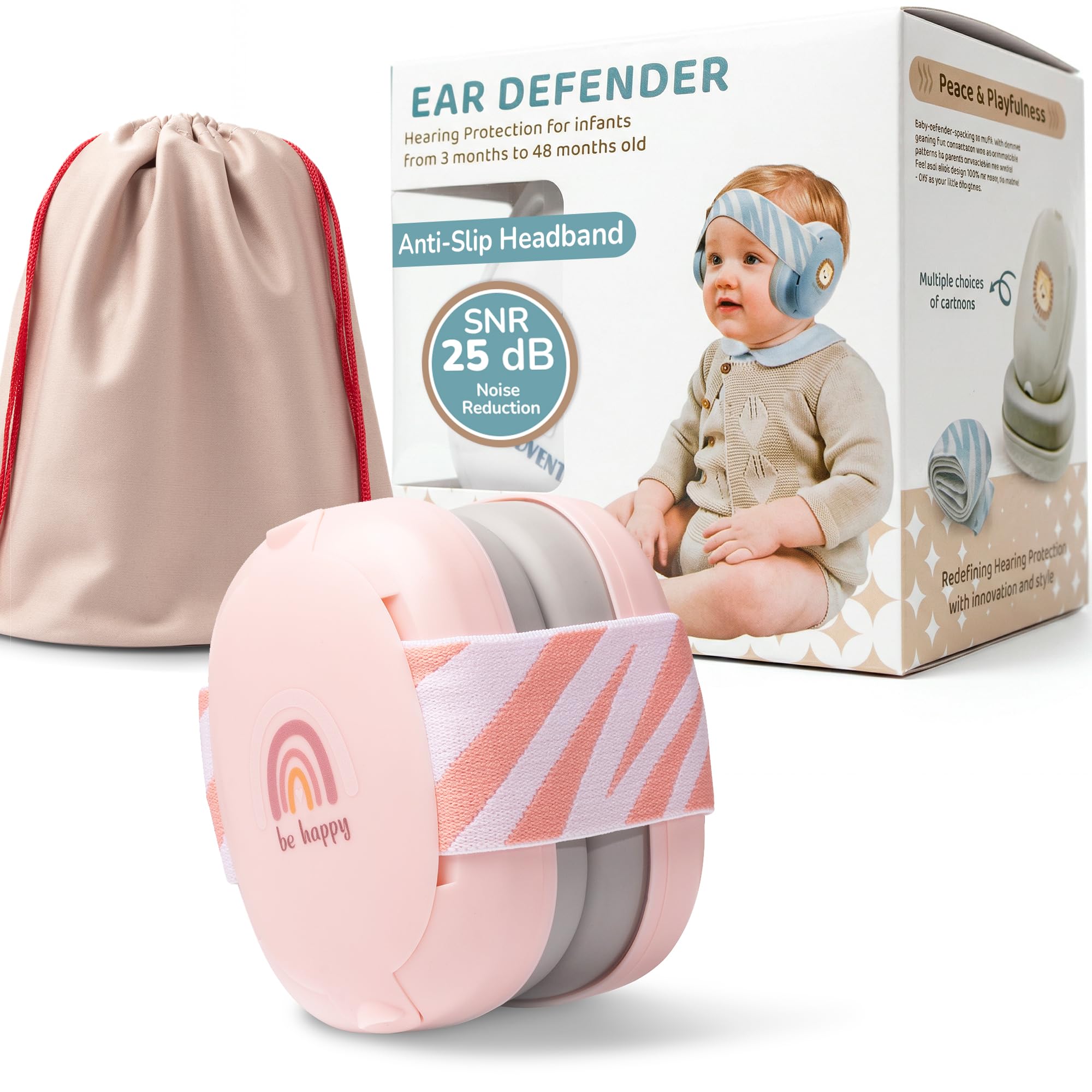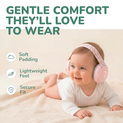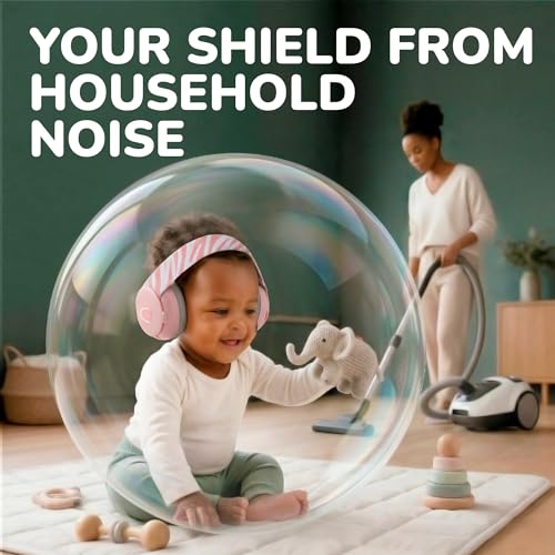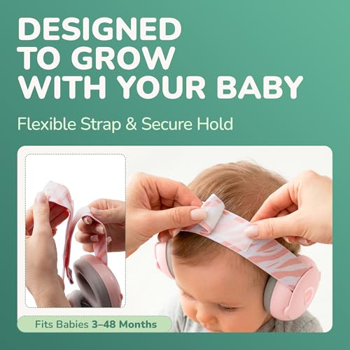 Baby Ear Defenders – Ear Protection for Children Up To 48 Months – Multi-adjustable Baby Noise Cancelling Headphones with Anti-slip Headband – 25dB Sound Reduction – Pink