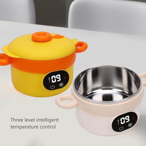 Baby Food Heating Bowl Rechargeable Smart Temperature Control Stainless Steel Portable for Porridge and Purees Travel Use (Milk Apricot)