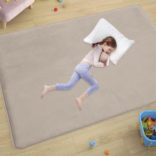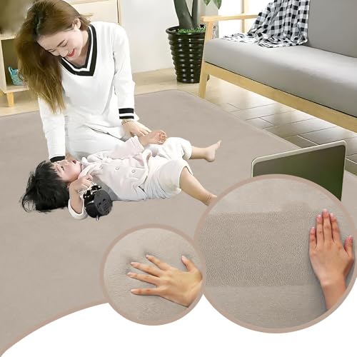 Baby Play Mat 2CM Thick Crawling Mat for Baby Non-slip, High-Density Baby Play Mats for Babies and Toddlers, 60 x 160 cm Light Brown Coral Velvet Area Rugs, Nursery Rugs Crawling Carpet for Floo