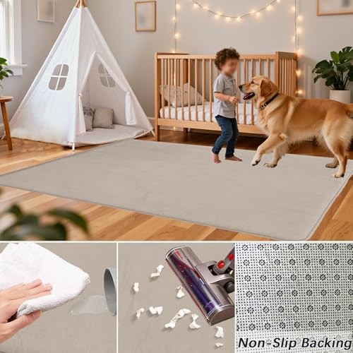 - Coral Velvet Kids Rug: The surface of the baby play mat is made of soft coral fleece material, The crawling carpet is composed of three parts: the top of baby mats for floor play is coral fleece fabric, the main component is polyester fiber, the interlayer part is slow rebound memory foam, the bottom layer of nursery rugs & carpets is placed with non-woven non-slip particles, that provide a strong grip on all floor types, Babies can play on it without worry