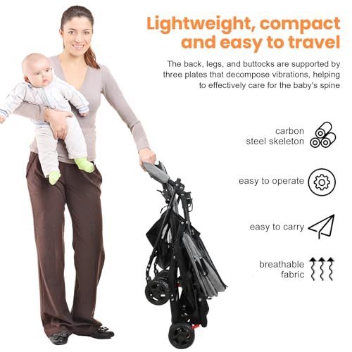This baby stroller is designed for daily mobility and travel convenience, combining lightweight structure with practical functionality. The adjustable backrest provides multiple seating and reclining options, allowing infants to sit, rest, or lie down comfortably during use.