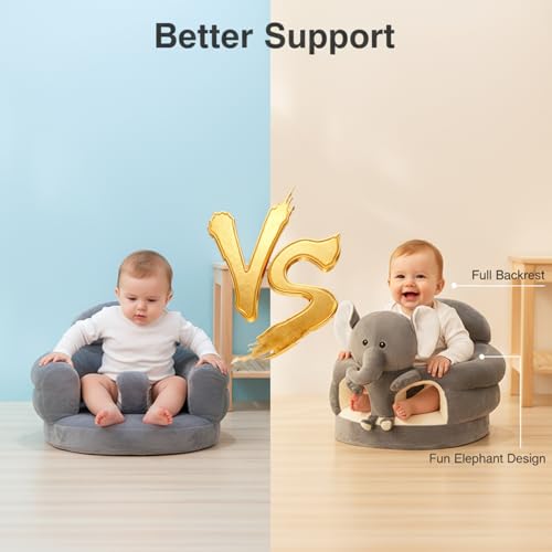 - Plush Comfort: Made with soft, breathable plush fabric featuring an adorable grey elephant design, this chair ensures cozy seating that keeps your baby comfortable for extended play and rest times