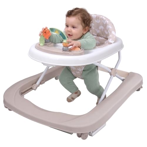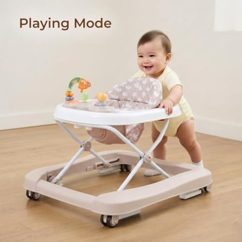 BabyTronix 4-in-1 Baby Walker with Activity Centre, Push-Along Walker, Adjustable Height, Music & Lights Tray, Foldable Infant Walker, Feeding Tray, Sit-to-Stand Walker for Babies & Toddlers
