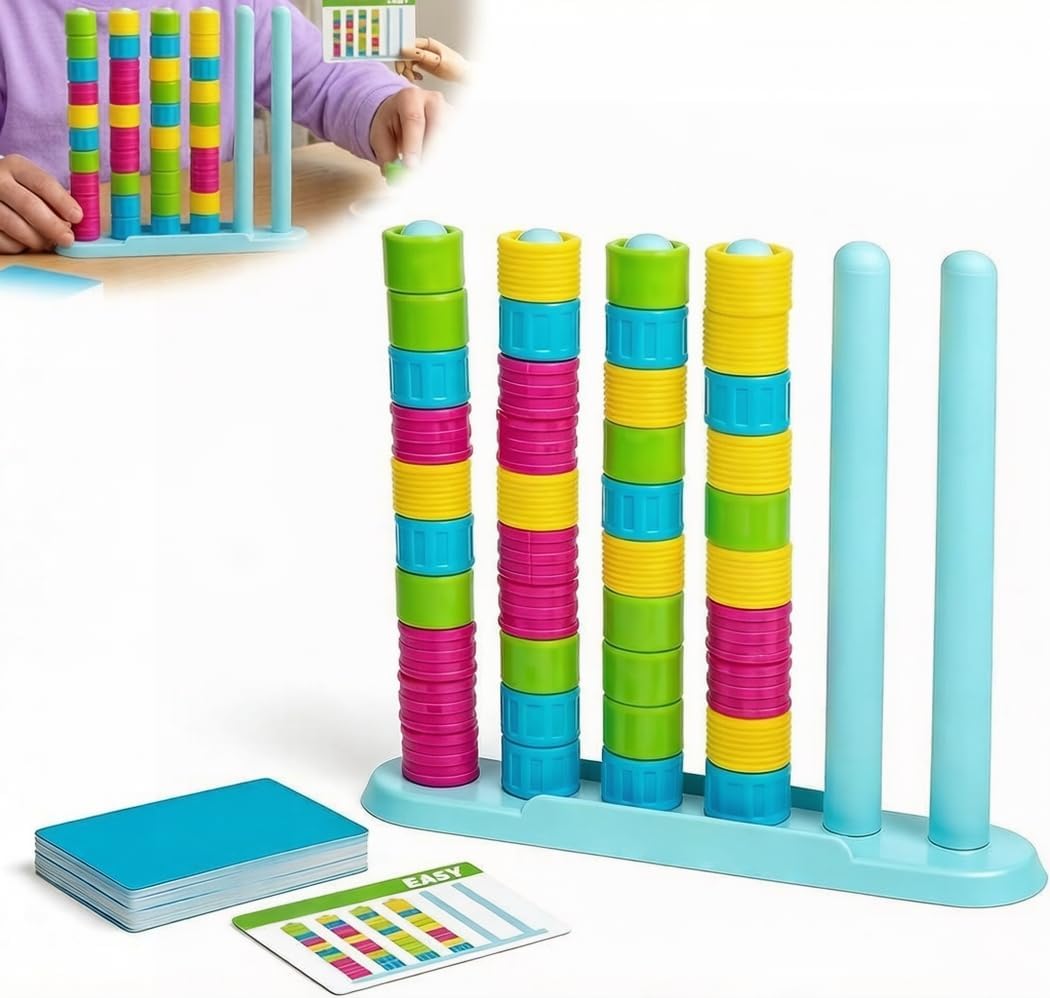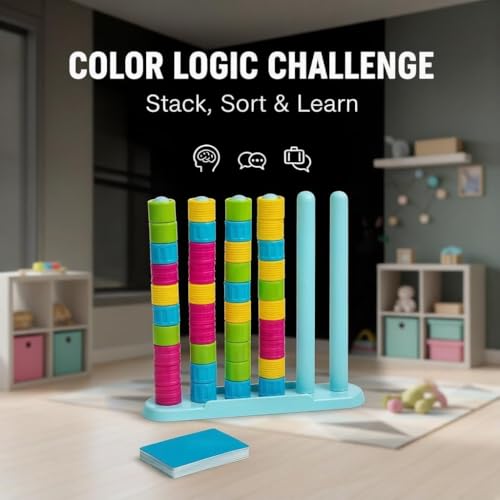 - Strategic Brain-Teasing Puzzle: Master logical stacking with simple yet engaging rules—move one ring at a time to group identical colors together, boosting problem-solving skills, hand-eye coordination, and strategic thinking.