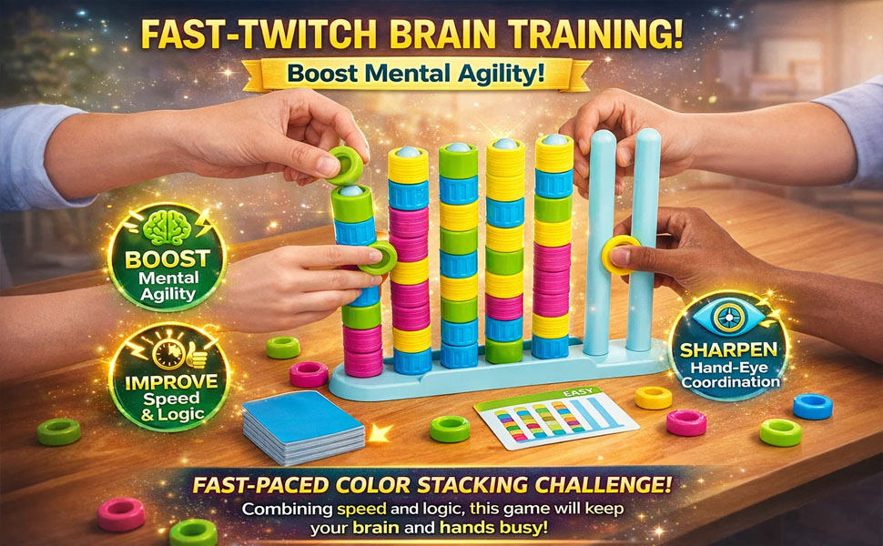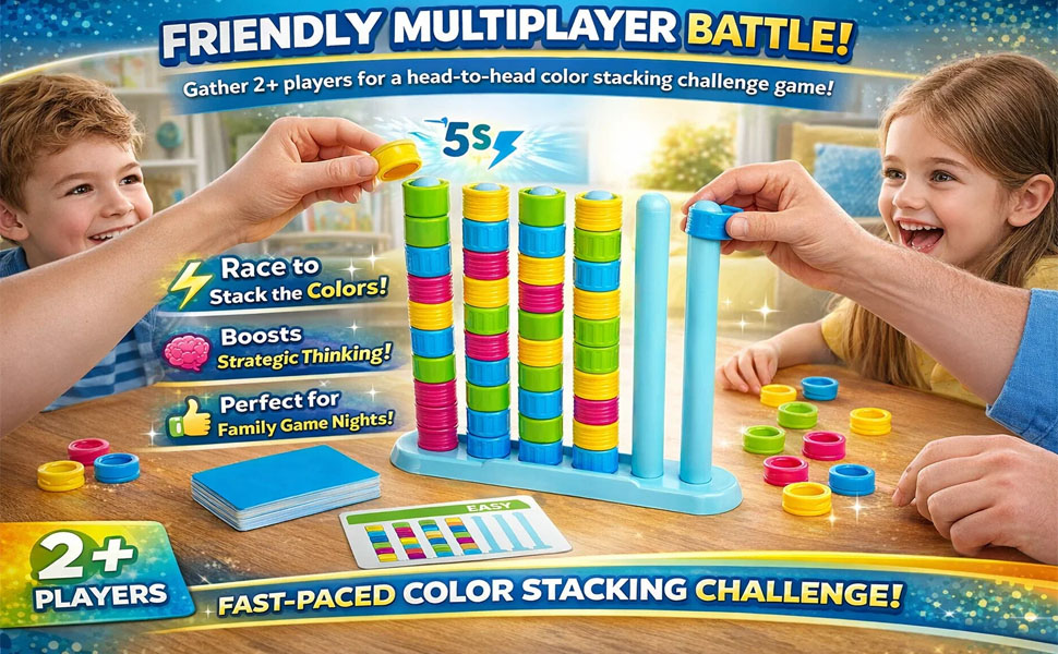 - Versatile Competitive Tabletop Fun: Perfect for solo practice or multiplayer battles, this colour stack game is ideal for family gatherings, holiday parties, and casual get-togethers, fostering friendly competition for kids, teens, and adults.