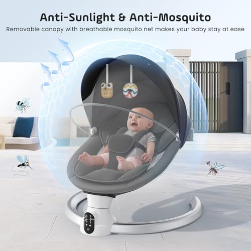 Electric Baby Swing, Bluetooth Baby Swing with App & Remote Control, 5 Swing