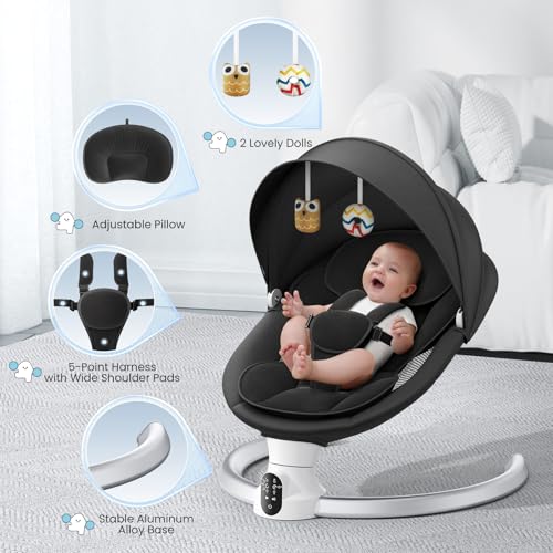 Electric Baby Swing, Bluetooth Baby Swing with App & Remote Control, 5 Swing Angles & 3 Timer Settings, Portable Newborn Swing with USB Power, Ergonomic Baby Bouncer for 0-6 Months (0-20 lbs) – Black