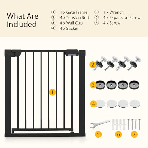 | Package Includes: | 1 x Gate Frame, 4 x Tension Bolt, 4 x Wall Cup, 4 x Sticker, 1 x Wrench, 4 x Expansion Screw, 4 x Screw, 1 x User Guide |