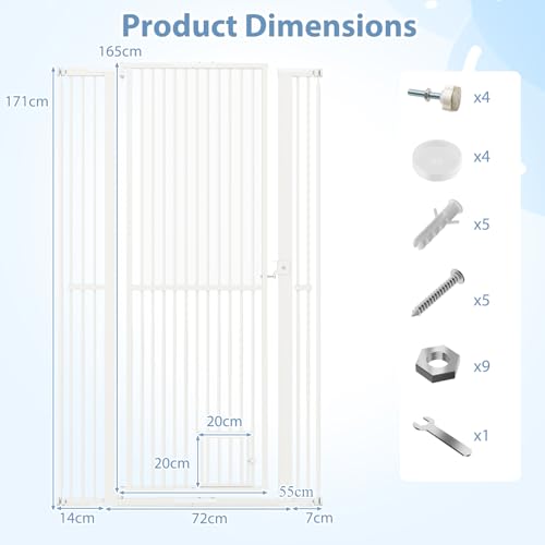 - ✔REAL PRIVACY & SAFETY- Standing at an impressive height of 150 cm/171 cm, this extra tall pet gate is the perfect solution for larger pets or those with a penchant for jumping. This remarkable height ensures that your pets remain safely contained, providing you with real privacy and security.