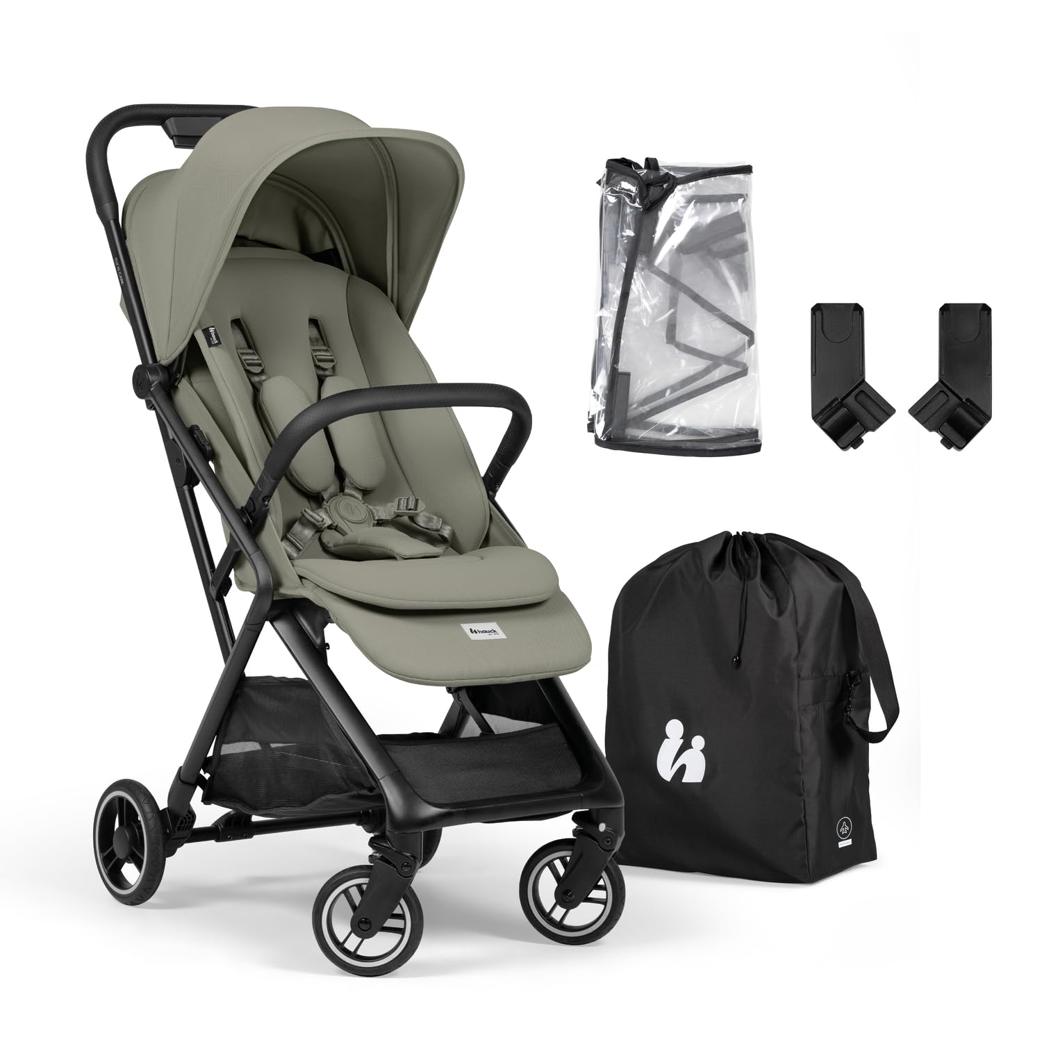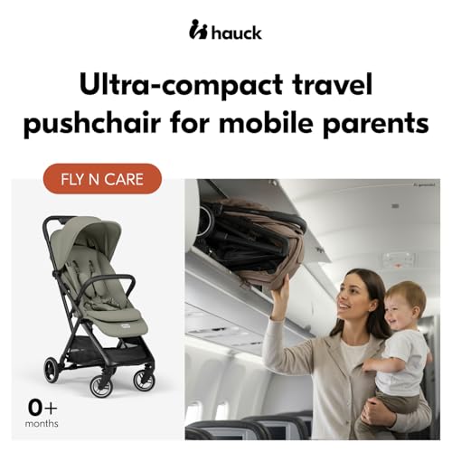 Hauck Fly N Care, Sage Green – Ultra Compact & Light Travel Pushchair (7.5kg) with One Hand Fold, Carry Strap & Bag, Seat Liner, Car Seat Adapter, UPF 50+ Sun Canopy, Fully Reclining Birth to 22 kg