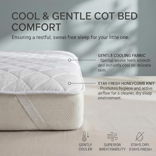 HOMESCAPES Cooling Cot Bed Mattress Topper 70x140cm Set of 2 – Cool Touch Breathable Quilted Cot Bed Mattress Pads for Toddler & Child, Corner Straps, Washable, OEKO-TEX® Standard 100 Certified