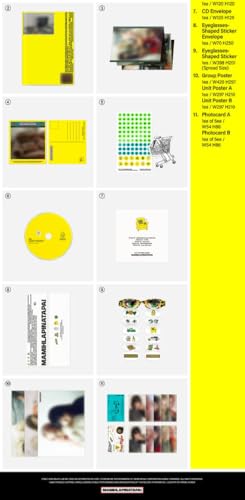 - Package : CD-R & Envelope + 64p Saddle-Stitched Photobook + 22p Accordion Photobook + Postcard + Sticker Sheet & Graphic Sticker + Eyeglasses-Shaped Sticker & Envelope + 3 Posters (On Pack) + Photocard A (Random 1 out of 5) + Photocard B (Random 1 out of 5) & Store Gift : Double-Side Extra Photocards Set