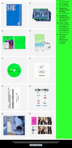 CD-R & Envelope + 64p Saddle-Stitched Photobook + 22p Accordion Photobook + Postcard + Sticker Sheet & Graphic Sticker + Eyeglasses-Shaped Sticker & Envelope + 3 Posters (On Pack) + Photocard A (Random 1 out of 5) + Photocard B (Random 1 out of 5)