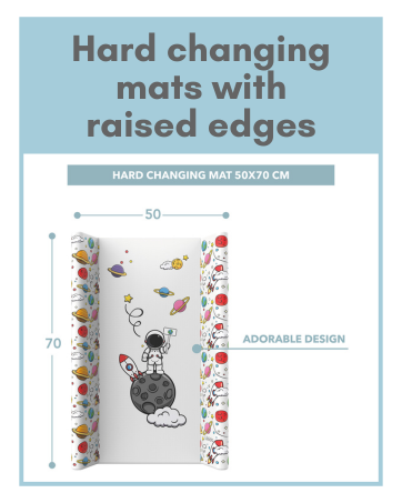 - COMFORTABLE AND SAFE: The 50×70 changing mat is perfect for a safe and comfortable diaper change, thanks to its raised edges that act as safety sides and its soft PVC surface.