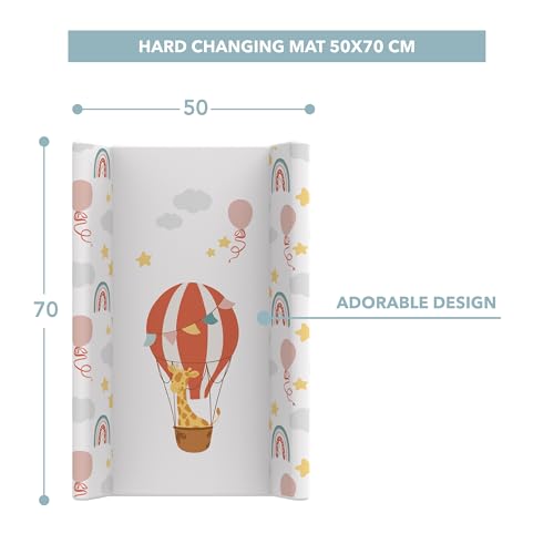 Kikido Changing Mat 50×70 – Hot Air Balloon – Anti-Roll Baby Changing Pad – Universal Mat with Safety Edges, Easy to Clean and Waterproof 70×50 cm
