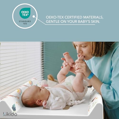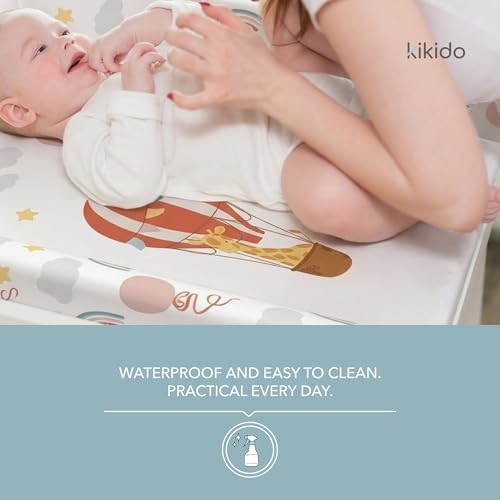 - IDEAL DIMENSIONS: With its 50×70 cm size, the Kikido universal changing mat fits perfectly on changing tables, dressers, and other surfaces, making diaper changes practical, safe, and comfortable.