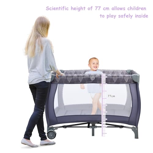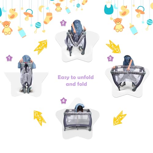 Foldable Design: This baby travel cot can be folded within few seconds, which is easy to store when not in use. Meanwhile, this compact folding size and light weight are portable to move one place to another place, and allow you to carrying around regardless of long journey.
