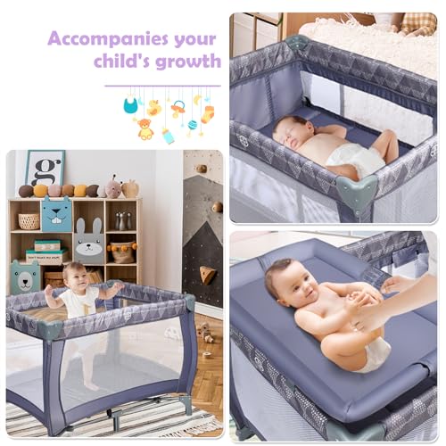 Versatile Design: This toddler crib could be used as a diaper changing table to relieve mother’s back pain. More importantly, this baby play yard provides an perfect place for baby to take a nap at any time as a baby bassinet, as well as being a playpen to allow playing freely for infants.
