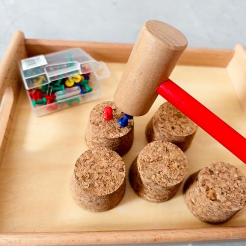 Montessori Hammering Toy Set, Practical Life Sensory Toy, Wooden Hammer & Cork