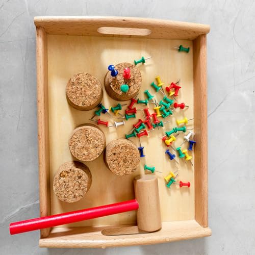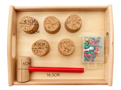 Montessori Hammering Toy Set, Practical Life Sensory Toy, Wooden Hammer & Cork Board Tap Pin Activity