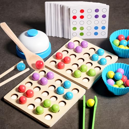 Montessori Wooden Clip Beads Battle Game, Color Matching & Concentration Training Toy