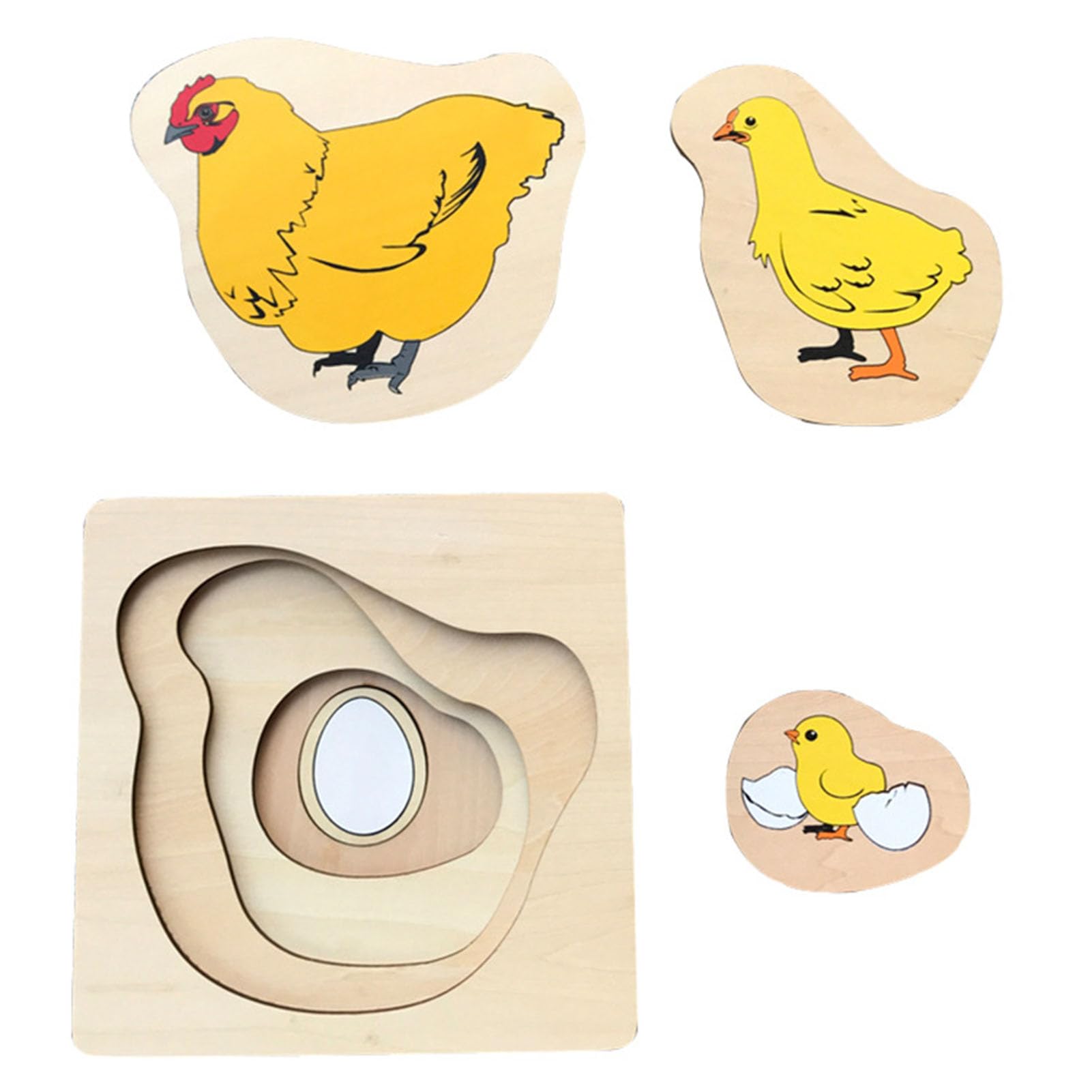 Montessori Wooden Jigsaw Puzzles, Animal & Life Cycle Learning Toys for Toddlers,chicke