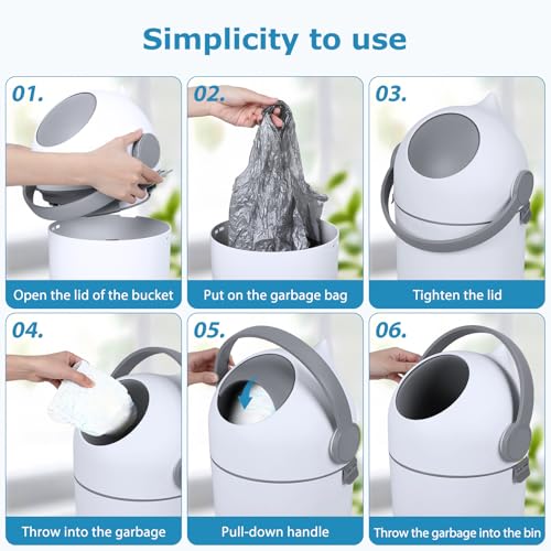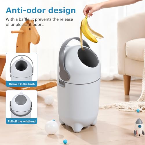 - One Hand Operation Diaper Pail Easy Daily Use: Diaper pail and nappy disposal bin feature simple one hand operation allowing quick disposal by lifting the handle, ideal for busy parents holding a baby, improving convenience and hygiene while reducing effort during frequent nappy changes throughout the day